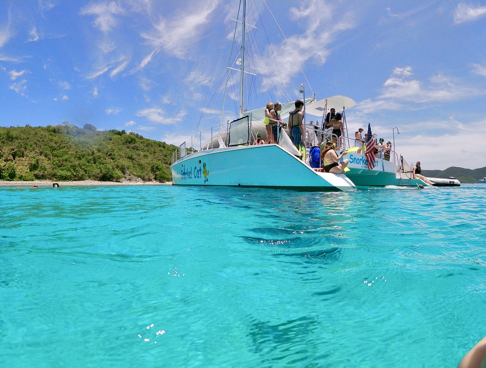 - Around 2:00pm, we’ll regroup, clear customs around 3:15pm and head back to the boat for a relaxing cruise home. On the return, enjoy delicious snacks and our premium open bar as we make a quick stop to clear U.S. customs in St. John, before returning to St. Thomas.
