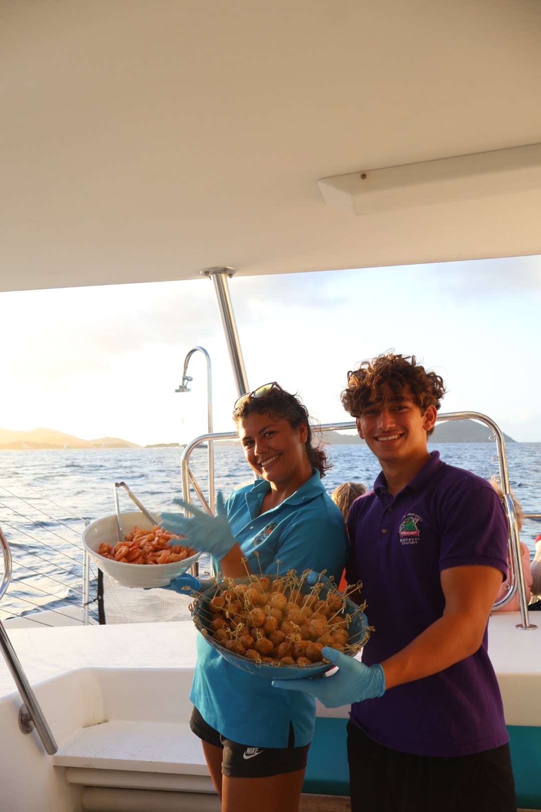 - A buffet style lunch is provided aboard the vessel after the first snorkel stop, surrounded by crystal caribbean waters